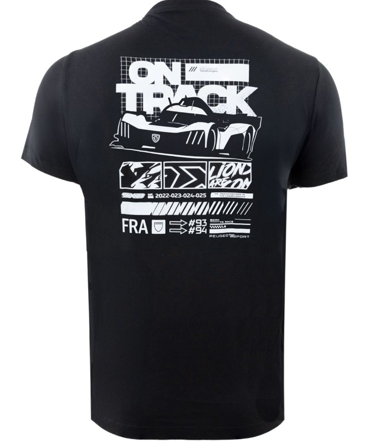 Show off your passion for competition with this black 9X8 T-shirt from Peugeot Sport x Kappa, featuring a bold, modern graphic design.
